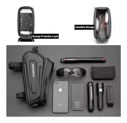 Este estuche es ideal para llevar tus accesorios a la mano y no perder de vista tu celular durante tus trayectos deportivos. Tiene una capacidad que te permite llevar el celular, llaves, linterna, gafas, y otros artículos útiles a la hora de estar fuera de casa realizando actividades como ciclismo de ruta, senderismo, montañismo, y descenso entre otros muchos usos. Diseñado para ubicarse en la barra de la bicicleta. Además, sus pestañas bloquean la luz directa evitando que te reboten rayos de luz y se bloquee la visión y claridad del celular.