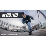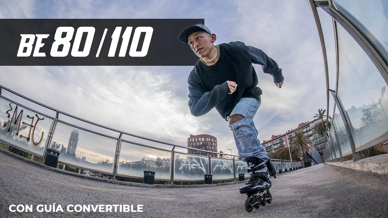 El patín Be 80/110 es de los pocos patines con guía convertible, lo que significa que puedes pasar de 4 ruedas de 80mm a 3 ruedas de 110mm en cualquier momento.
